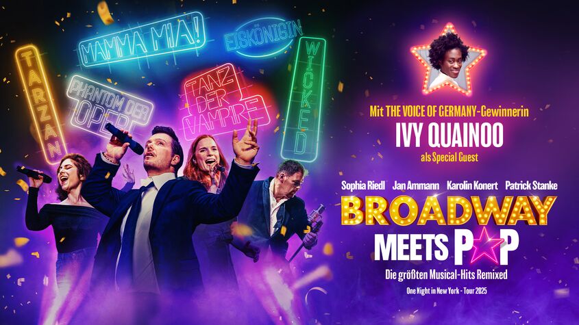 BROADWAY MEETS POP ist keine Musical-Gala wie jede andere – es ist das Live-Erlebnis für alle, die Musicals lieben und Pop fühlen. Erlebe live, wie zwei Welten aufeinandertreffen und sichere dir jetzt deine Tickets für das Musical-Event des Jahres.