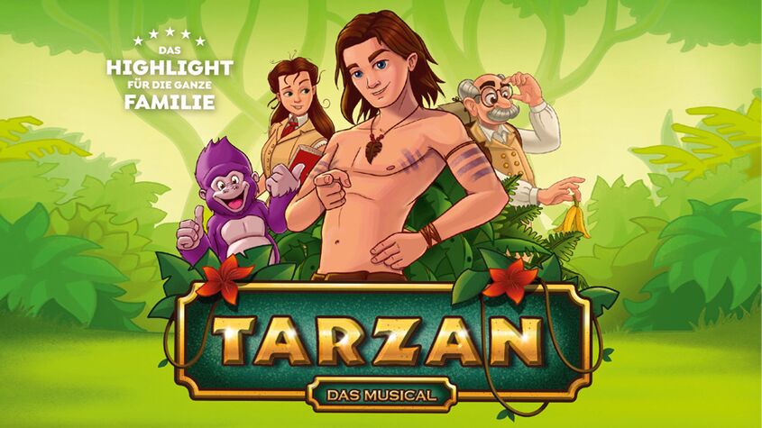 Das für seine modernen Familienmusicals bekannte Theater Liberi inszeniert die hundert Jahre alte Geschichte von Edgar Rice Burrough in einer zeitgemäßen Version. Die bestens ausgebildeten Musicaldarsteller bringen die Figuren mit viel Gefühl und Energie auf die Bühne. Dynamische Musik und Choreografien, fantasievolle Kostüme sowie atmosphärische Lichteffekte entführen die Zuschauer in eine farbenprächtige Dschungelwelt.